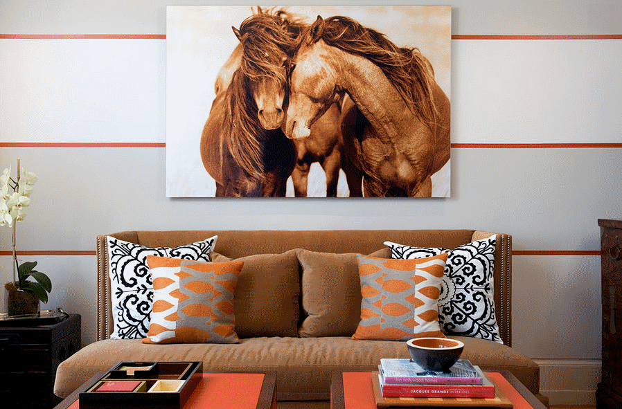 Любовь к лошадям у меня с детства, это невероятно умные и добрые животные, после нахождения с которыми заряжаешься какой-то особой энергетикой. В последнее время дизайнеры стали всё чаще использовать конный силуэт в дизайне интерьера: картины, статуэтки, принты на подушках, обои. Я даже не думала, что один такой элемент способен так точно дополнить интерьер и создать невероятную атмосферу, добавив в неё теплоту, умиротворенность, нотку благородности и дух свободы. В фен-шуй лошадь символизирует верность, успех, смелость, победу, упорство, выносливость и скорость. Хотите принести удачу в ваш дом - найдите там место для лошади :)